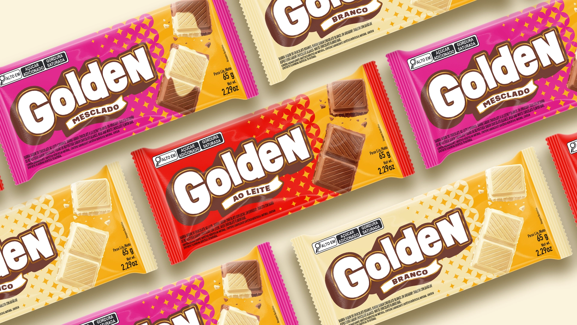 A nova embalagem amplia impacto visual, organiza a arquitetura da linha e rejuvenesce a percepção da marca. Golden deixa de ser apenas uma opção funcional para se tornar uma escolha visível, desejável e competitiva dentro da categoria.